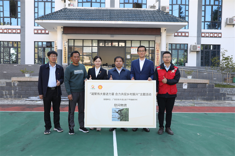 此次活動,由機械院、商貿(mào)公司牽線搭橋,攜手殼牌(中國)公司為峰洋村進行物資捐贈。機械院下屬企業(yè)柳州格瑞米公司組織5家愛心企業(yè)捐贈了價值2.8萬元的基礎(chǔ)設(shè)施建設(shè)物資,殼牌公司、商貿(mào)公司向峰洋村捐贈了8盞太陽能路燈,幫助峰洋村解決基礎(chǔ)設(shè)施難題。