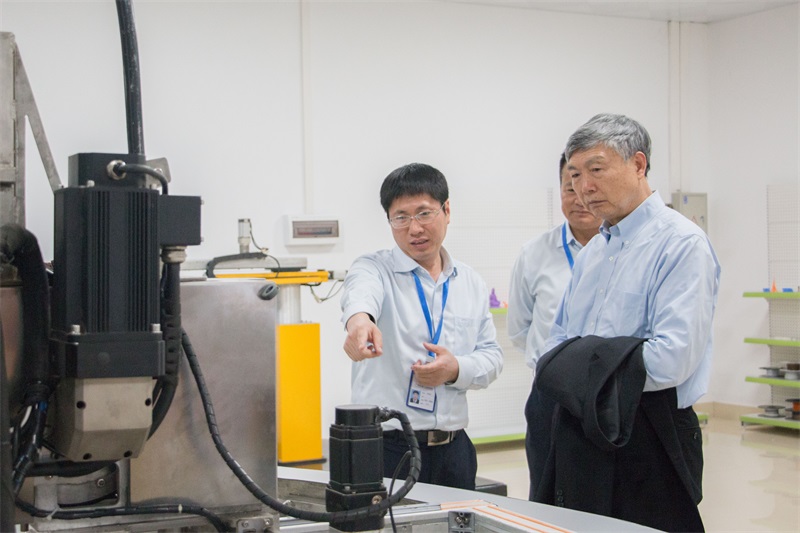 隨后,在院領(lǐng)導(dǎo)的陪同下,李培根院士先后參觀了我院工業(yè)機(jī)器人實(shí)驗(yàn)室、3D金屬實(shí)驗(yàn)室、智能制造實(shí)驗(yàn)室、柔性線培訓(xùn)中心、全自動(dòng)包裝生產(chǎn)線。李培根院士非??春梦以旱娜嵝陨a(chǎn)線、全自動(dòng)包裝碼垛機(jī)器人生產(chǎn)線、高壓清洗機(jī)器人、3D打印等產(chǎn)品,并對(duì)其市場(chǎng)抱有充分信心。他指出:希望我院能開(kāi)闊視野,推廣智能制造在跨行跨界的研發(fā)及應(yīng)用,不斷凝練核心技術(shù),成為具有核心競(jìng)爭(zhēng)力的創(chuàng)新型企業(yè)。