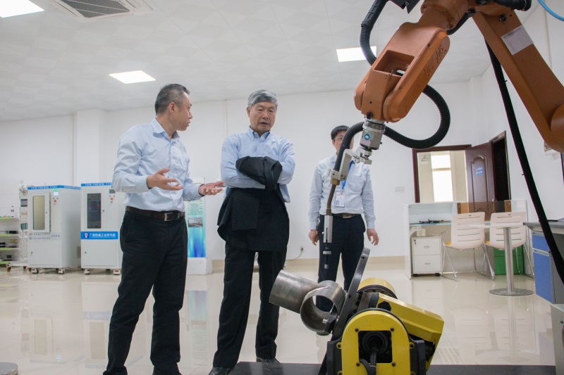 王吉才院長(zhǎng)向李培根院士詳細(xì)介紹了我院的情況,重點(diǎn)介紹了近年來(lái)我院轉(zhuǎn)型升級(jí)后在智能制造方面的技術(shù)應(yīng)用。李院士在細(xì)心傾聽(tīng)我院領(lǐng)導(dǎo)的介紹后,對(duì)我院在促進(jìn)廣西智能制造創(chuàng)新發(fā)展中的作用表示充分肯定,并針對(duì)我院的科研、生產(chǎn)等工作高屋建瓴地給出了許多建設(shè)性的意見(jiàn)。