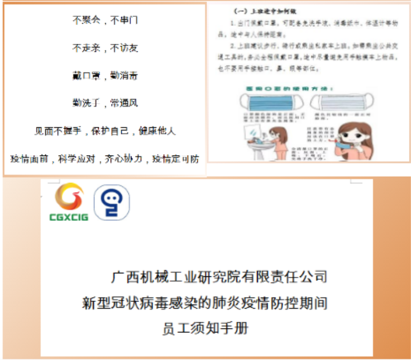 科學(xué)防控,嚴(yán)防死守。公司嚴(yán)格執(zhí)行《廣西機(jī)械工業(yè)有限責(zé)任公司公司新型冠狀病毒肺炎防控方案》的要求,落實(shí)辦公樓出入規(guī)定、員工就餐規(guī)定、辦公場(chǎng)所及公共設(shè)施防護(hù)等規(guī)定,確保復(fù)工人員工作環(huán)境的安全健康。加強(qiáng)內(nèi)部管理,充分利用會(huì)議室等閑置空間,將每間辦公室的人員都控制在3人以內(nèi),分散辦公,降低密度,公司還推行分批取餐、分散就餐的方式,避免出現(xiàn)交叉感染。加強(qiáng)消毒區(qū)域劃分責(zé)任制落實(shí),建立消毒工作記錄,每日2次對(duì)辦公室、車間、電梯、食堂等重點(diǎn)區(qū)域進(jìn)行清潔。設(shè)置廢棄口罩專用垃圾桶,有效阻斷感染途徑。