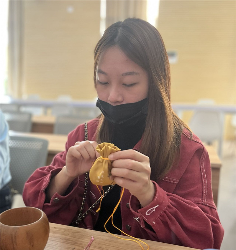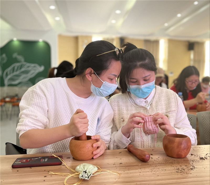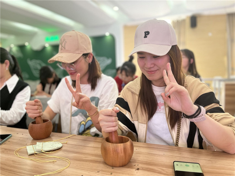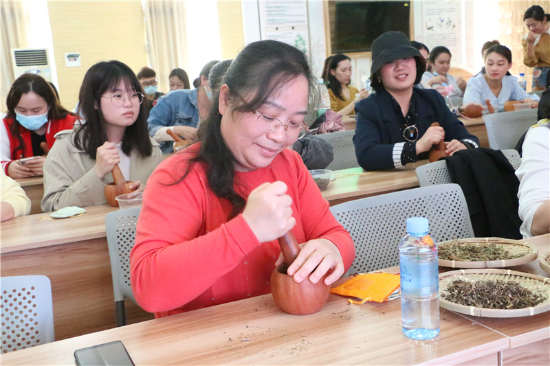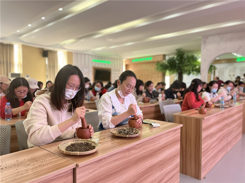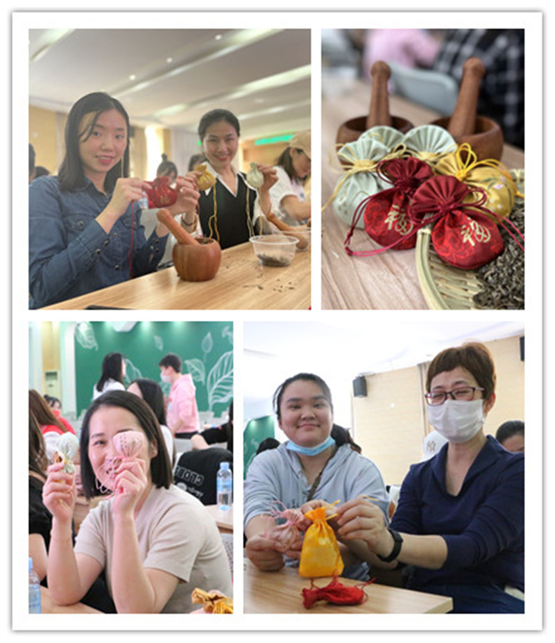 “吳茱萸芳香去濕、疏肝理氣,薄荷可以提神醒腦,大家隨身佩戴,可以在人體周圍形成高濃度的小環(huán)境......”在指導老師的解說中,女職工們一起認識了艾葉、薄荷、紫蘇、吳茱萸、花椒等草藥,以及每種草藥的獨特功效,并通過動手實踐,制香、聞香,更生動地認識藥用植物與養(yǎng)生知識、傳統(tǒng)文化的關聯(lián)。