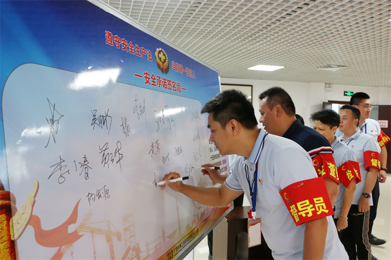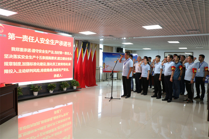 “我鄭重承諾,遵守安全生產(chǎn)法,當(dāng)好第一責(zé)任人,堅(jiān)決落實(shí)安全生產(chǎn)十五條措施要求……”會(huì)上,機(jī)械院黨委書記、董事長王吉才帶領(lǐng)全體人員作“第一責(zé)任人安全生產(chǎn)承諾”,公司領(lǐng)導(dǎo)班子成員為各直屬企業(yè)、中心,公司各部門主要負(fù)責(zé)人頒發(fā)紅袖章、安全哨子,簽署安全生產(chǎn)承諾,筑牢安全發(fā)展理念,落實(shí)安全生產(chǎn)責(zé)任,營造出濃厚的安全文化氛圍。