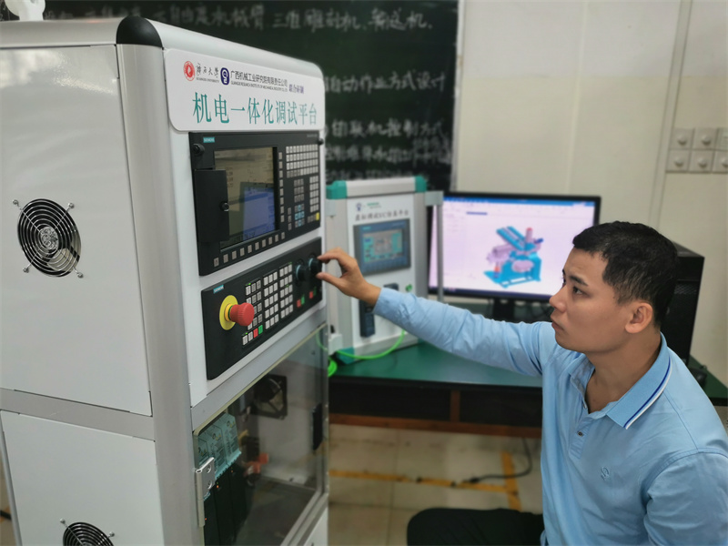 隨著《中國智造2025》的深入實施,智能制造領(lǐng)域的自動化智能化水平都大幅提升。李修明發(fā)現(xiàn)企業(yè)都面臨一個嚴(yán)重的挑戰(zhàn)——技能型人才的缺失。通過與高校對接,展開深入調(diào)研,他發(fā)現(xiàn)目前廣西工科院校的研究、教學(xué)工作與學(xué)生就業(yè)方向、企業(yè)需求普遍存在結(jié)構(gòu)性矛盾。一是學(xué)生的專業(yè)知識、技能訓(xùn)練與企業(yè)招聘技能需求不匹配,學(xué)生畢業(yè)后在求職和實際應(yīng)用方面存在困難;二是課程內(nèi)容設(shè)置與現(xiàn)代化制造模式脫節(jié),學(xué)校缺乏與時俱進的信息化教學(xué)和實訓(xùn)環(huán)境。