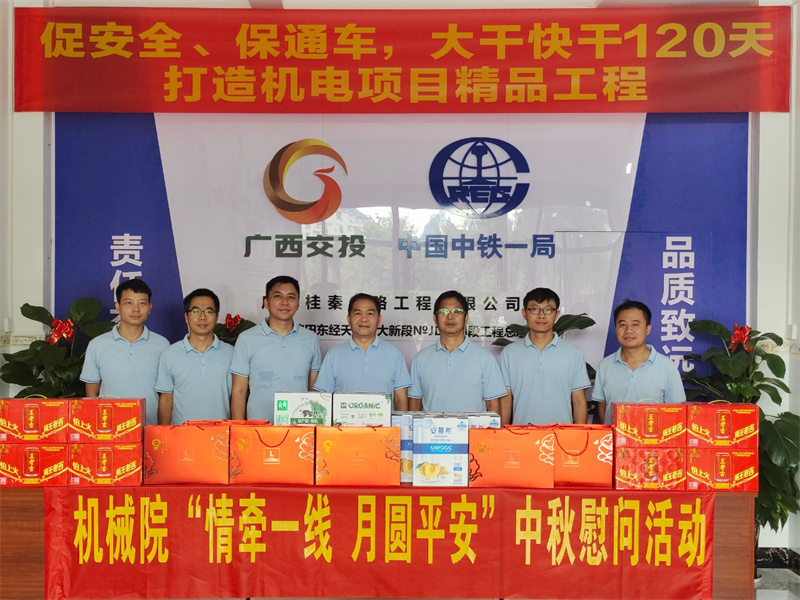 丹桂飄香,情滿月圓。在中秋團(tuán)圓的節(jié)日里,機(jī)械院各重點(diǎn)項(xiàng)目人員依然奮戰(zhàn)在建設(shè)一線,趕工期、抓質(zhì)量、搶進(jìn)度、保生產(chǎn)。為將“暖心交投”職工滿意行動(dòng)落到實(shí)處,進(jìn)一步弘揚(yáng)奉獻(xiàn)精神,讓堅(jiān)守一線的員工們度過一個(gè)溫暖祥和的中秋節(jié),在中秋佳節(jié)來臨之際,機(jī)械院領(lǐng)導(dǎo)班子成員到各項(xiàng)目部開展“情牽一線 月圓平安”中秋慰問和節(jié)前安全檢查。