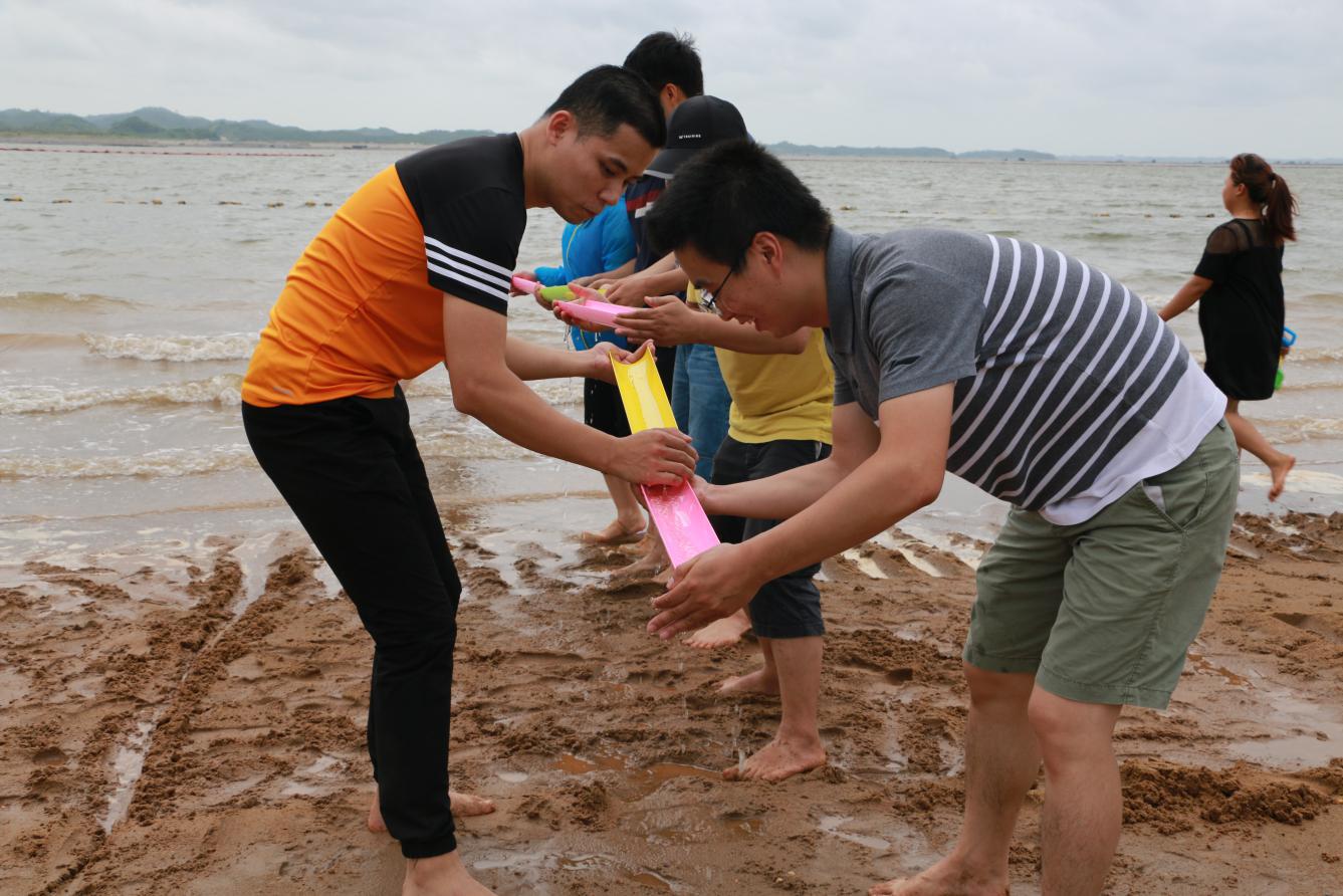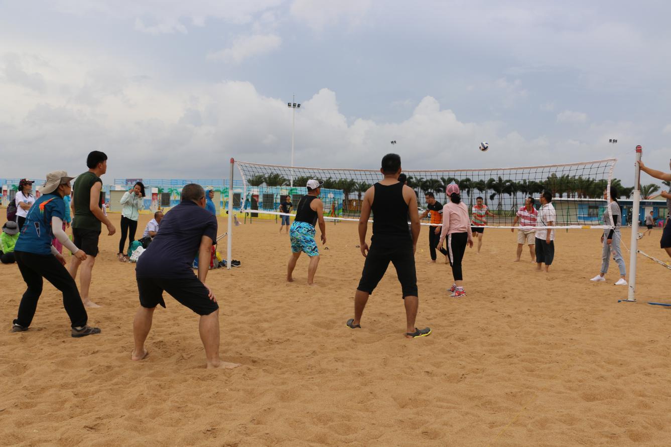 拓展活動(dòng)分為沙灘排球、兩人三足、盛水接力等3個(gè)內(nèi)容,旨在鍛煉員工的身體素質(zhì),增強(qiáng)員工對團(tuán)隊(duì)的參與意識(shí),促進(jìn)員工之間的溝通交流。2017年世界沙灘排球巡回賽在茅尾海沙灘激情開賽,所以我們的第一個(gè)拓展活動(dòng)內(nèi)容當(dāng)然也先從我們院最有群眾基礎(chǔ)的傳統(tǒng)項(xiàng)目排球開始。在大伙的開場熱身之后,沙灘排球在歡呼聲中拉開了帷幕,場上的選手扣球廝殺,場外的小伙伴們也紛紛吶喊助威。從沙灘排球到后面的兩人三足、盛水接力活動(dòng),大家從剛開始的懼怕烈日有點(diǎn)畏手畏腳到后面的完全放開融入到團(tuán)隊(duì)活動(dòng)中,從磨合到默契,發(fā)揚(yáng)同舟共濟(jì)的精神群策群力,無論是參與活動(dòng)的隊(duì)員還是歡呼圍觀的群眾都是全情投入,現(xiàn)場的氣氛和沙灘上的熱浪一樣熱火朝天,圓滿達(dá)成素質(zhì)拓展培訓(xùn)活動(dòng)的預(yù)期目標(biāo)。
