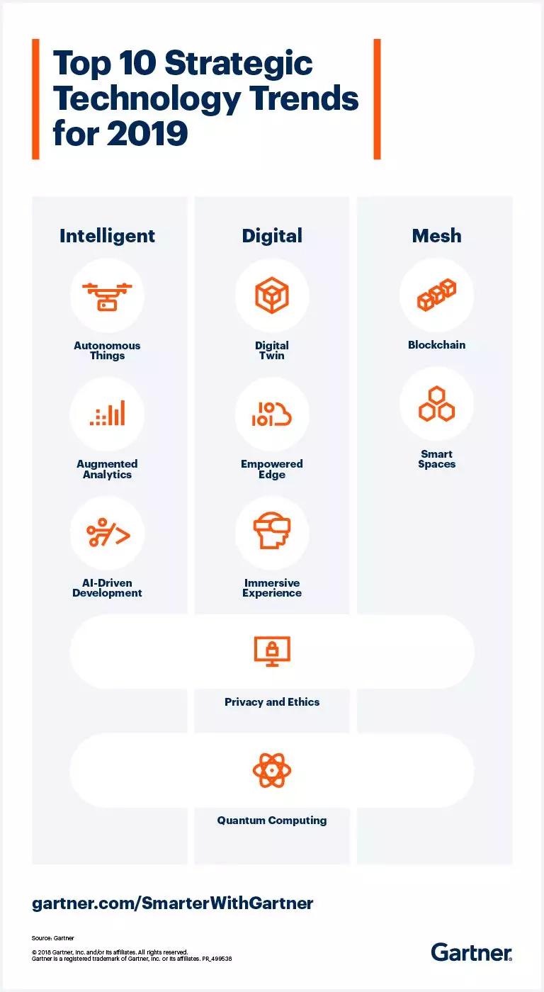 2019年的十大戰(zhàn)略性技術(shù)趨勢(shì)如下: