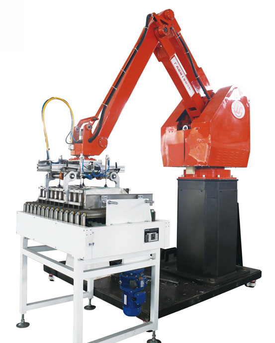 1.基于圓筒坐標(biāo)系開(kāi)發(fā)的多關(guān)節(jié)機(jī)器人,占地面積小,功率消耗低,碼垛效率高,破包率小,達(dá)到國(guó)內(nèi)先進(jìn)水平。